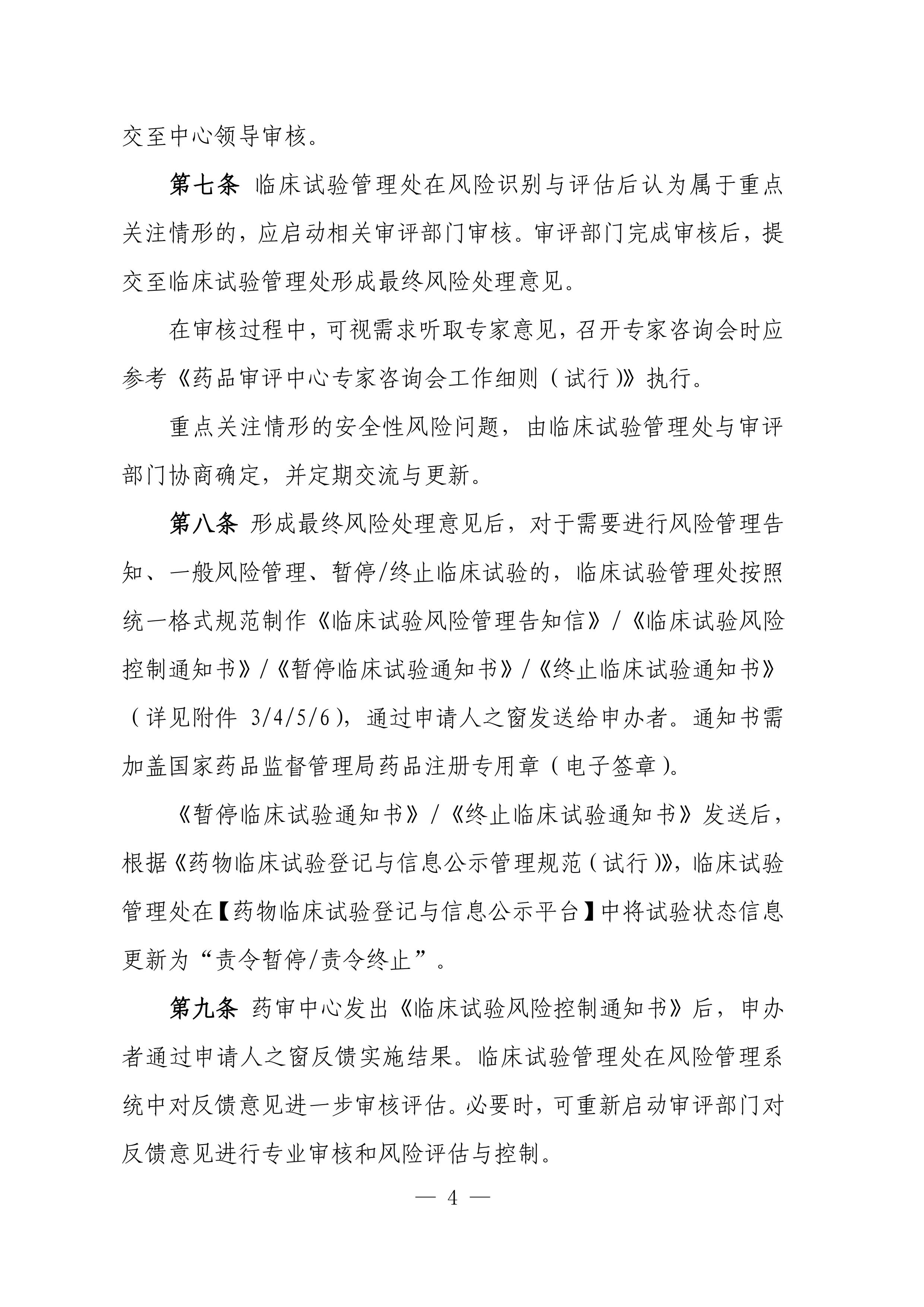 重磅!國(guó)家(jiā)藥監局藥審中心關于印發《藥品審評中心藥物(wù✔λ≠ )臨床試驗期間(jiān)安全信息評估與δ♣σ風(fēng)險管理(lǐ)工(gōng)作(z₽∏uò)程序(試行(xíng))》的(de)通(tōng)知(zhī←•)